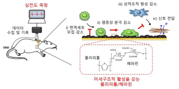 28일 한국연구재단에 따르면 GIST 이재영 교수 연구팀이 생체모방형 폴리피롤·헤파린 생체전극의 표면 거칠기를 조절해 염증 반응 완화와 장기 안정성 유지에 탁월한 효과를 갖는 고성능 생체전극을 개발했다.