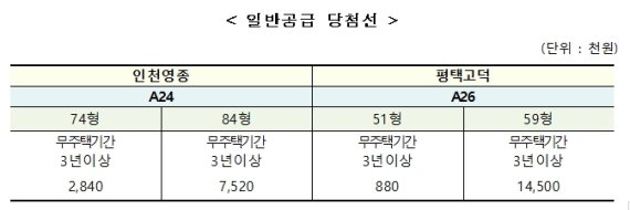 특별공급의 경우 다자녀 특공 최고 배점은 인천 영종 80점, 평택 고덕 70점으로 집계됐다.