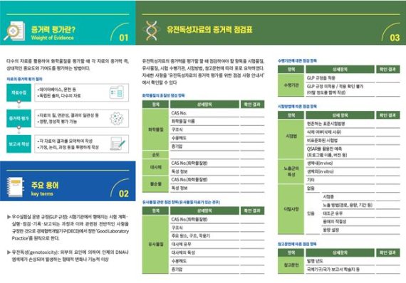 유전독성 자료의 증거력 평가 항목의 누락 여부를 빠르게 확인할 수 있도록 점검표도 만들어 산업계 및 평가자에게 배포할 예정이다.