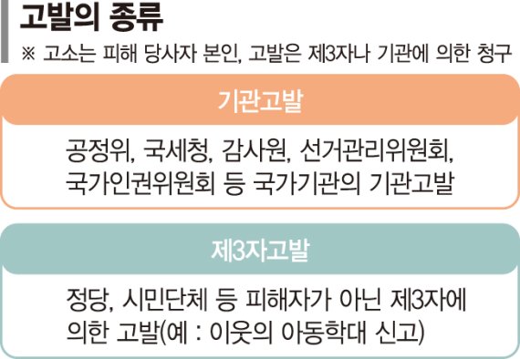 로스쿨 한 교수는 "'검수완박' 법안을 국회에서 너무 성급하게 추진하다 보니 공정거래법을 포함해 다른 많은 법과의 충돌이 향후에도 지속될 것"이라고 지적했다. 고발인의 이의신청 금지 조항의 경우 입법으로 인한 '득'보다 '실'이 크다는 비판이 나온다. 고발은 크게 2종류로 △정당, 시민단체 등의 제3자 고발 △공정위, 국세청, 감사원, 선거관리위원회, 국가인권위원회 등 국가기관의 기관고발로 나뉜다. 피해 당사자가 하는 고소와 달리 고발은 △사회적 법익 침해 △국가적 범죄 등에 신청이 가능하다.