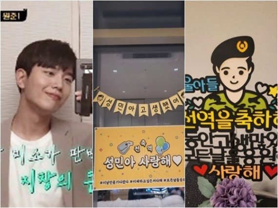 해당 사진은 아들의 군대 전역을 축하 파티의 한 장면인 것으로 보인다. 화려한 색상의 플래카드에 다채로운 문구들이 적혀 있다. "성민아 고생했어" "축 전역 성민아 사랑해" "이날만을 기다렸다" "이제 하고 싶은 거 다해" "모든 날들을 응원해" "울아들 전역을 축하해" "그동안 고생 많았어" 등의 축하 문구에서 엄마의 따뜻한 마음이 전달된다.
