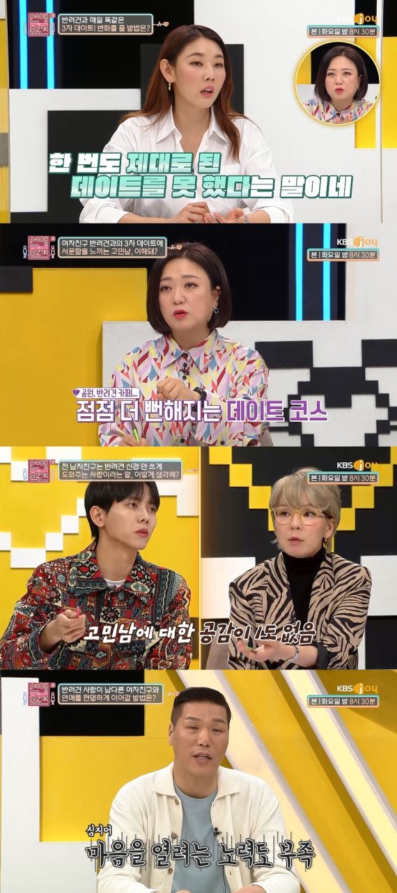 [서울=뉴시스]김주희 인턴 기자 = 애인의 남다른 반려견 사랑 때문에 연애에 위기를 맞은 사연이 소개됐다.