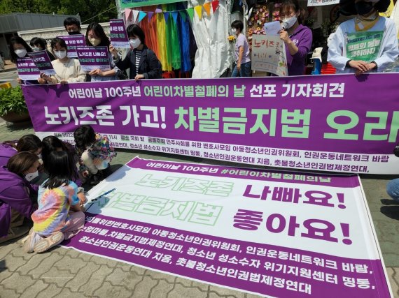 시민인권단체들이 어린이날 100주년을 맞아 '어린이 차별철폐의 날'을 선포하며 차별금지법 제정을 촉구했다.