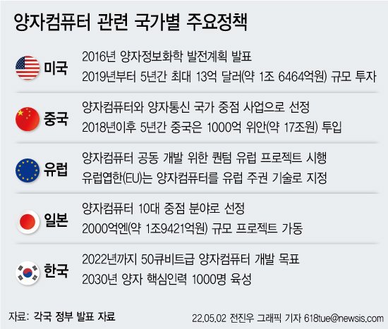 【서울=뉴시스】송종호 기자 = 양자 컴퓨팅 기술이 국가 경쟁력을 좌우할 미래 기술로 주목 받으면서 세계는 지금 치열한 개발 경쟁을 벌이고 있다. 미국과 중국이 앞서가는 가운데 유럽과 일본이 바짝 뒤쫓는 모양새다.