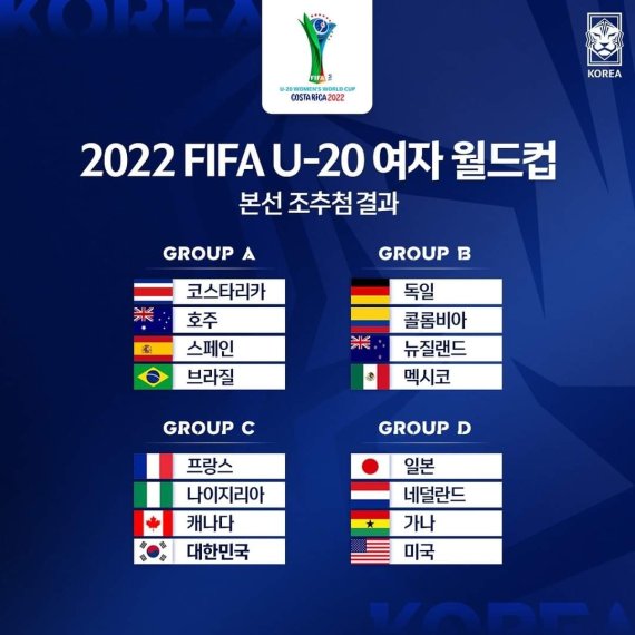 FIFA는 6일(이하 한국시간) 2022 U-20 여자 월드컵 조 추첨을 진행, 결과를 발표했다. 한국은 프랑스, 나이지리아, 캐나다와 함께 C조에 배정됐다.