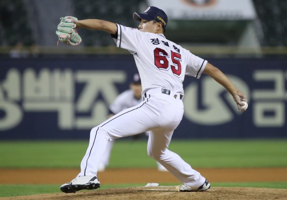 7회초 2사 1루에서 등장한 정철원은 오윤석을 2루수 뜬공으로 잡았다.