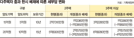 기재부 관계자는 "다주택자에 대한 과도한 세부담이 완화되고 보유세 과세기준일인 올해 6월 1일 이전에 잔금 청산을 마칠 경우 종합부동산세 등 보유세 부담도 낮출 수 있어 다주택자의 매물출회 활성화가 가능하다"고 밝혔다.