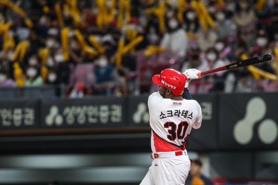 소크라테스는 이어진 타격에서 김재윤의 포크볼을 공략, 개인 첫 끝내기 안타로 승리에 마침표를 찍었다.