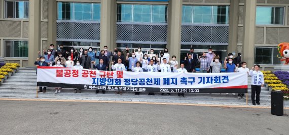 (여수=뉴스1) 김동수 기자 = 전남 여수시의회 무소속 의원들이 11일 지방의회 정당공천제 폐지를 주장했다.