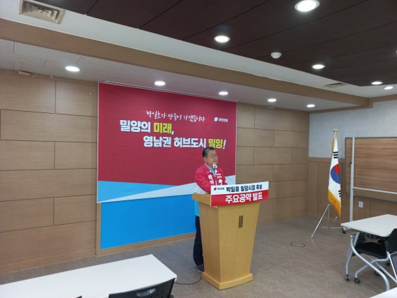 [밀양=뉴시스] 안지율 기자 = 박일호 국민의힘 경남 밀양시장 후보가 '시민을 위한 예산 1조원 시대, 기업이 찾아오는 기업퍼스트 나노도시' 등을 강조하면서 '영남권 허브도시 밀양건설을 위한 6개 분야에 64개 공약'을 발표했다.
