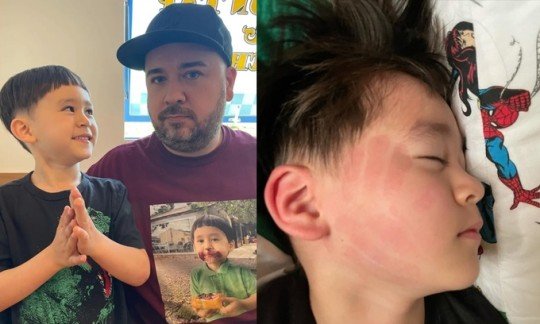 해밍턴 11일 아들 벤틀리 인스타그램에 "싸다구 맞은 건 아니구요 ㅎㅎㅎㅎ. 자고 일어났는데 엄마가 깜짝 놀라셨지요~~"라는 글과 함께 사진을 올렸다.