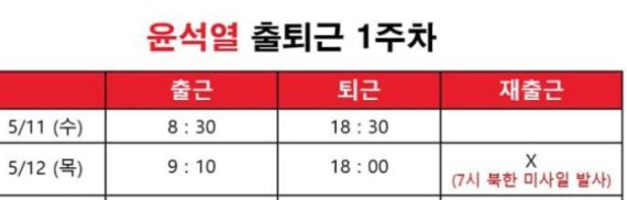13일 SNS에 진보 지지자 중 한명이 지난 11일, 12일 윤 대통령 출퇴근 시간을 비교한 뒤 "출근은 늦어지고 퇴근을 빨라졌다"며 일을 그만큼 덜하고 있다고 비판했다.