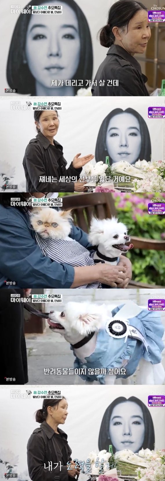 15일 밤 방송된 TV조선(TV CHOSUN) '스타다큐 마이웨이'(이하 '마이웨이')는 향년 55세의 나이로 갑작스럽게 세상을 떠난 배우 강수연의 삶을 재조명하는 특집으로 꾸며졌다.