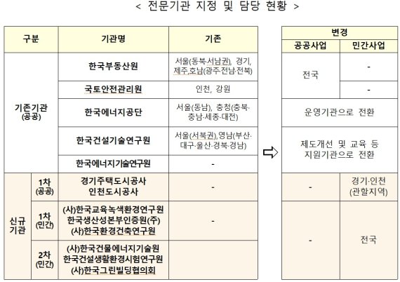 이에 국토부는 '에너지절약형 친환경주택 건설기준'을 개정해 전문역량을 보유한 지방공사 2곳(경기주택도시공사, 인천도시공사)과 민간기관 3곳(1차) 등을 전문기관으로 확대 지정했다. 민관기관은 18일 2차로 3곳을 추가 선정해 이달 말부터 지정과 동시에 검토업무를 개시할 예정이다.
