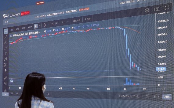 [서울=뉴시스] 유자비 기자 = 지난주 한국산 코인 '루나'와 '테라'의 폭락 사태 여파 속에서 투자자들이 스테이블코인 테더에서 70억달러(약 8조8858억원) 넘게 인출했다고 17일(현지시간) CNBC가 보도했다.