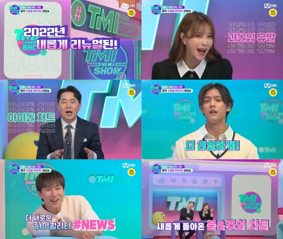 한편 이번 주부터 Mnet '티엠아이 쇼(TMI SHOW)'가 ‘티엠아이 뉴스 쇼(TMI NEWS SHOW)'로 프로그램명을 변경하고, 시청자들이 궁금해하는 스타들의 다양한 주제를 차트쇼 형식으로 소개한다.