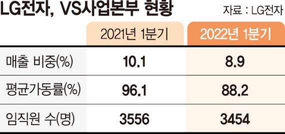 18일 LG전자가 공시한 분기보고서에 따르면 LG전자 VS사업본부의 올해 1·4분기 매출액은 1조8776억원으로 분기 기준 최대치를 달성했지만, 영업손실은 63억원을 기록했다. 2016년 1·4분기 이래 25분기 연속 적자다. 지난해 연간으로 9329억원의 영업손실을 입었다.