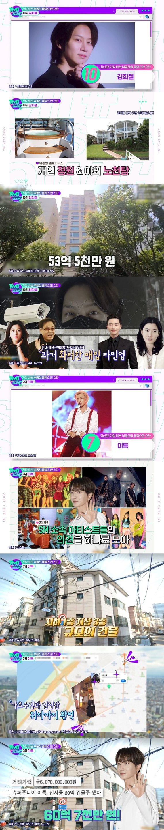 지난 18일 방송된 Mnet 예능 프로그램 'TMI 쇼'에서는 '가장 비싼 부동산 플렉스한 스타' 리스트가 공개됐다.