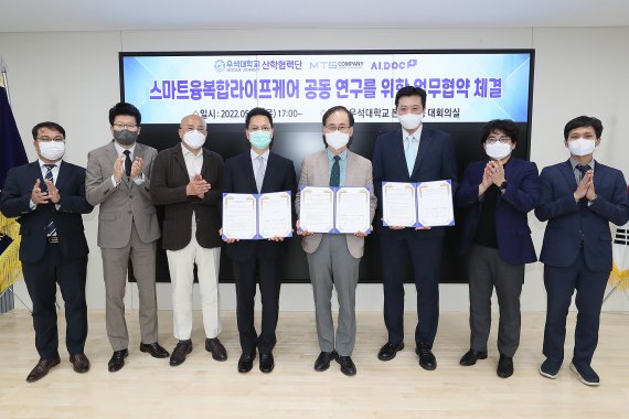 [완주=뉴시스] 윤난슬 기자 = 우석대학교 산학협력단은 ㈜엠티에스컴퍼니, 에이아이닥터㈜와 스마트 융복합 라이프케어 공동 연구를 위한 업무협약을 체결했다고 20일 밝혔다.