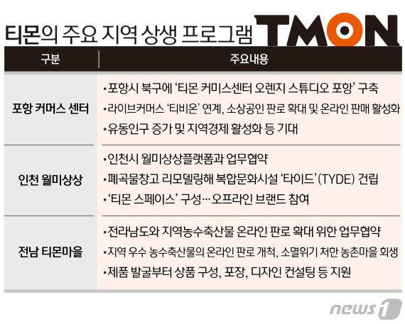 티몬은 지역에 '커머스센터'를 구축하고 지역 소상공인의 온라인 판매 활성화를 지원하고 있다. 25일에는 포항에 '티몬 커머스센터 오렌지스튜디오 포항'을 선보인다. 라이브커머스 '티비온'을 연계해 소상공인 상품 판매와 마케팅 지원에 나선다.