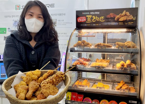 24일 업계에 따르면 6월 1일부터 마일드넓적다리·매콤넓적다리마일드통다리 등 세븐일레븐의 치킨 3종 가격이 기존 2200원에서 2500원으로 13.6%(300원) 오른다.