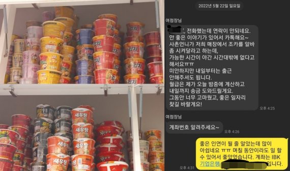 이에 A씨는 "좋은 인연이 될 줄 알았는데 많이 아쉽다"면서 "며칠 동안이라도 일할 수 있어서 좋았다"고 답했다. 하지만 A씨는 점장의 메시지를 받고 온종일 울었다고 털어놨다.
