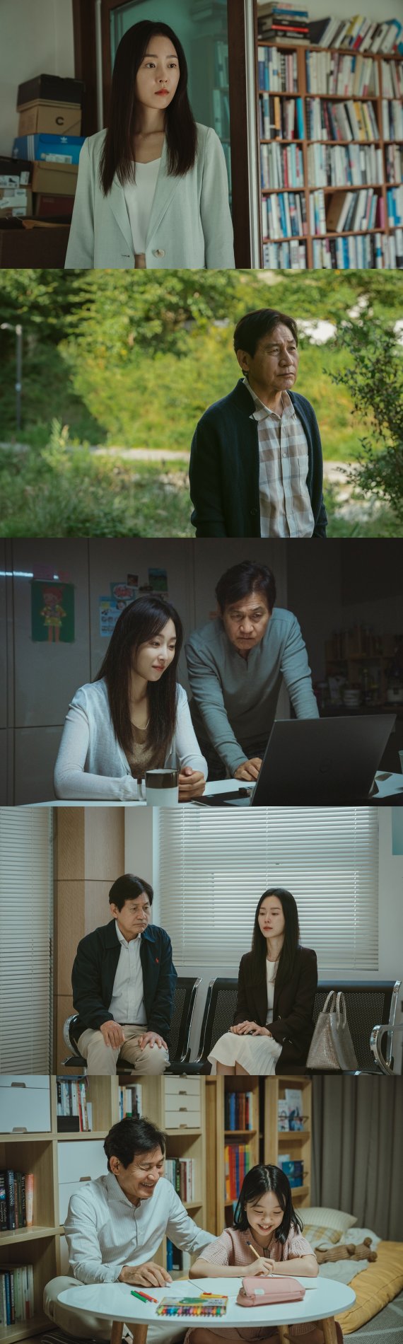영화 속에서 수진과 인우는 그다지 친하지 않은 딸과 아버지다. 수진은 하나뿐인 딸 지나(주예림 분)의 육아에 필요가 있을 때만 아버지 인우를 부른다. 늘 날카롭게 날이 서 있는 변호사 수진은 지나에게 언제나 엄격하다. 어린 시절 부모의 보살핌을 제대로 받지 못했다고 느끼는 그는 홀로 거친 세상에서 성공하기 위해 사력을 다했고, 그래서 딸 지나도 강하게 키우려고 노력한다.