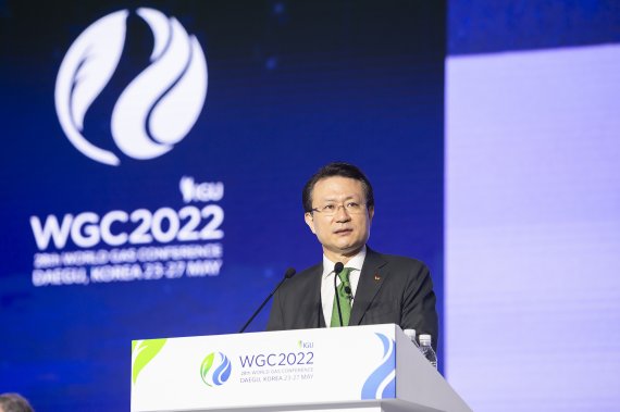 유 부회장은 26일 열린 '2022 세계가스총회(WGC 2022)'에 참석해 "에너지 산업은 넷제로(Net Zero) 달성을 위해 경제성과 안보, 지속가능성 등 3가지 주요 요인이 장기적으로 균형을 유지하면서 진화 및 발전해야 한다"고 강조했다. 이어 "중국, 인도, 인도네시아의 석탄발전 비중은 60~70%에 달하는데 이를 전환하는 과정에서 가스가 중요한 역할을 할 가능성이 크다"며 "모든 국가들이 미래 에너지원으로 보고 있는 재생에너지의 간헐성 문제를 해결하는 것도 가스가 될 것"이라고 말했다.
