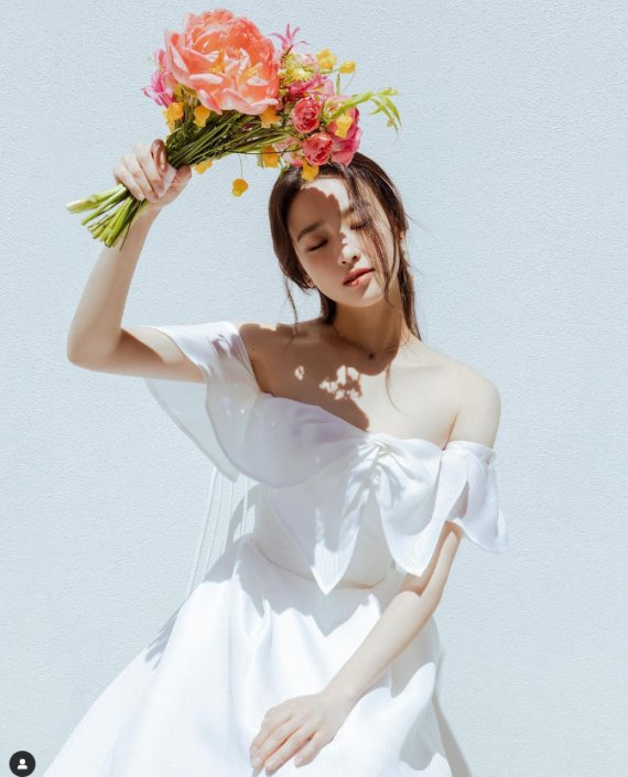 또 손연재는 드레스 자태도 공개했다. 사진에서 손연재는 어깨가 드러나는 청순한 오프숄더(맨어깨) 드레스를 입고 화사한 컬러의 꽃다발인 부케를 든 채 포즈를 취하고 있는 모습이다.