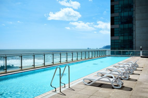 이 곳 야외 풀데크는 제주 최대 규모(4290㎡)를 자랑한다. 도심과 바다, 공항까지 시원하게 조망할 수 있어 인기다. 사계절 온수풀로 운영되며 인피니티풀, 키즈풀 등으로 구성된다.