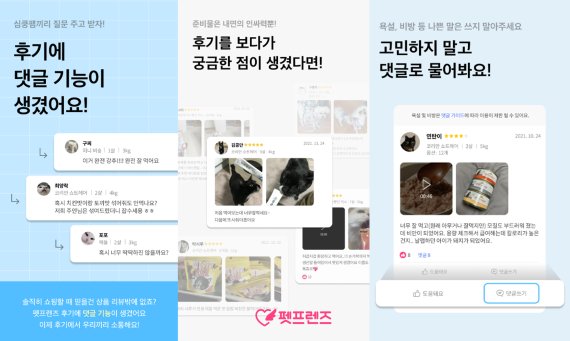 [서울=뉴시스]권안나 기자 = 반려동물 1등 쇼핑몰 펫프렌즈는 펫커머스 업계 최초로 후기에 댓글을 달 수 있는 기능을 출시한다고 10일 밝혔다.