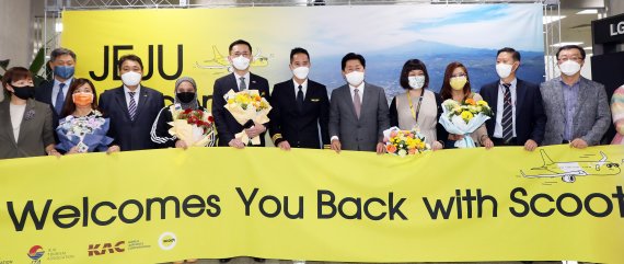 정원 201명 만석으로 싱가포르 창이국제공항을 이륙한 스쿠트항공기 TR812편이 이날 오전 8시50분쯤(싱가포르 현지 출발 오전 1시 35분) 제주국제공항에 도착했다.