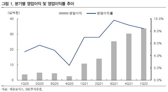 [서울=뉴시스] 김경택 기자 = IBK투자증권은 16일 태웅로직스에 대해 2분기에도 호실적이 이어질 전망이라고 분석했다. 투자의견과 목표주가는 따로 제시하지 않았다.