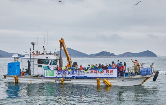 이날 지역 어민, 지역사회 관계자, 회사 임직원 등이 새끼 우럭 20만 마리 방류와 해양 환경 정화 활동을 실시했다.