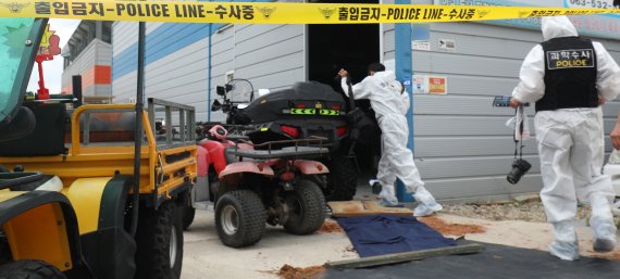 살인사건이 벌어진 곳은 30대 부부가 운영하는 전북 정읍시 북면의 한 창고형 점포. 이날 찾은 현장에는 '출입금지'라고 쓰인 노란 폴리스라인이 설치돼 있었다. 과학 수사 경찰관들이 추가적인 현장 감식을 위해 폴리스라인 안팎을 쉼 없이 오갔다.