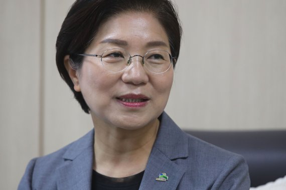 [서울=뉴시스] 조현아 이종희 기자 = 김미경 서울 은평구청장은 6·1 지방선거에서 재선에 성공한 더불어민주당 소속 현역 구청장이다. 서울 25개 자치구 중 민주당은 8곳을 가져오는 데에 그쳤다. 김 구청장은 이번 선거에서 51.76%의 득표율로 국민의힘 남기정 후보를 제치고 연임에 성공했다.