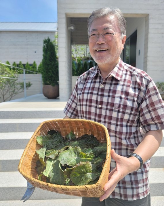 문 전 대통령은 먼저 '올해의 첫 수확은 상추'라는 글과 함께 텃밭에서 상추를 수확하고 있는 모습과 상추가 든 바구니를 들고 있는 모습이 담긴 사진을 게시했다.