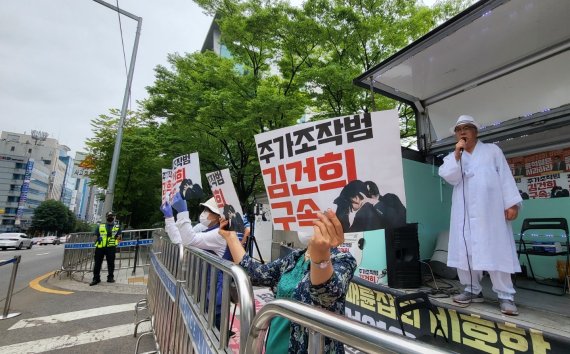 이어 건사랑 대표는 "서울의소리 백은종은 김건희 여사를 '주가조작범 김건희 구속'이라는 현수막을 설치해 피켓을 들고 지난 12~18일까지 서초동 아크로비스타 건너편 법원 앞에서 집회를 열고 허위사실을 유포해 김건희 여사의 명예를 심각하게 훼손했다"고 고발 사유를 밝혔다.