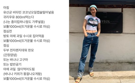 공개된 사진에는 진서연이 기록한 다이어트를 위해 철저하게 지키고 있는 식단 사진이 담겨있다.