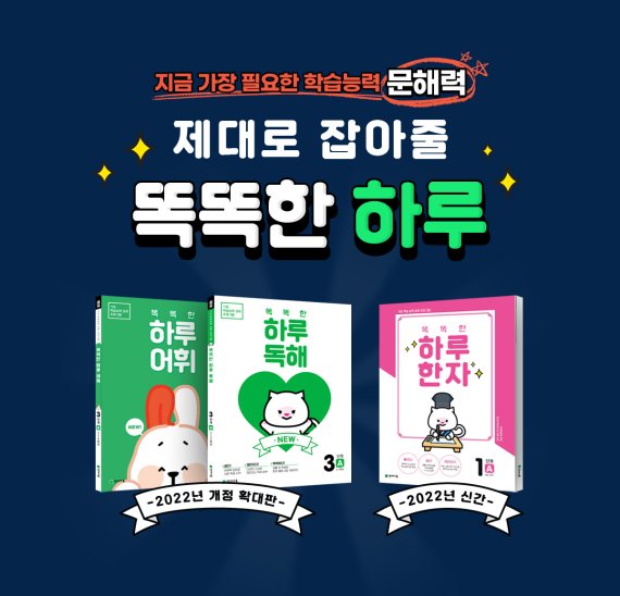 이와 관련 천재교육은 하루 10분 부담 없는 학습량으로 초등학생들의 문해력을 효과적으로 기를 수 있는 ‘똑똑한 하루’ 국어 과목의 2022년 신간 및 개정 확대판을 선보였다. 똑똑한 하루 시리즈는 예비초등학생부터 초등 6학년까지 학업 단계와 난이도에 따라 교재를 선택해 공부할 수 있다. ‘쇼츠 세대’인 학생들의 학습 집중 시간과 분량 대비 교재 완독률을 고려해 개발되었기 때문에, 아이들이 지루해하지 않고, 흥미를 가지고 지속적으로 학습할 수 있다.