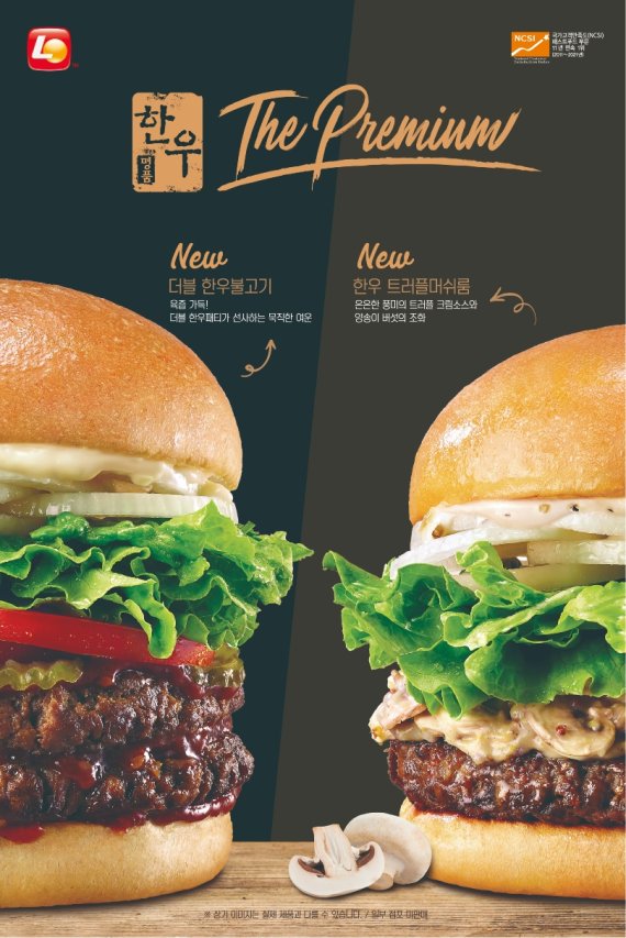 롯데리아가 한우패티 2장으로 구성한 '더블 한우불고기버거'와 트러플오일 크림소스를 가미한 '한우 트러플머쉬룸버거'를 출시했다고 23일 밝혔다.