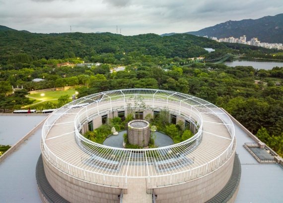 3층 옥상정원은 과천관의 숨겨진 명소였다. 2층에 조성된 원형 정원이 한눈에 내려다 보이고, 탁 트인 외곽의 청계산, 저수지 등 수려한 자연풍광이 펼쳐진다.