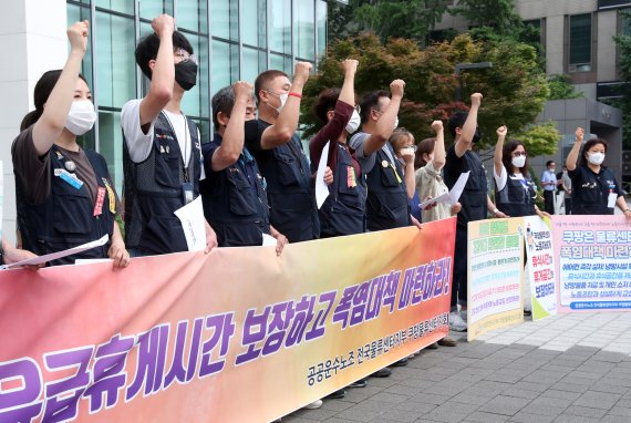 쿠팡 노조는 지난 23일부터 서울 송파구 쿠팡 본사 안에서 물류센터의 폭염 대책 마련 등 노동환경 개선을 요구하는 점거 농성을 진행 중이다.