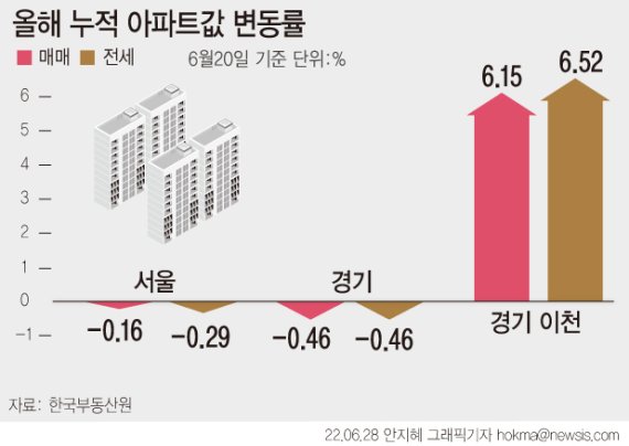 28일 한국부동산원의 주간 아파트가격 동향에 따르면 이천시 아파트값은 올해(20일 기준) 들어 6.15% 상승했다. 이 기간 서울과 수도권 아파트값이 각각 0.16%, 0.46% 하락한 것과 대조적이다.