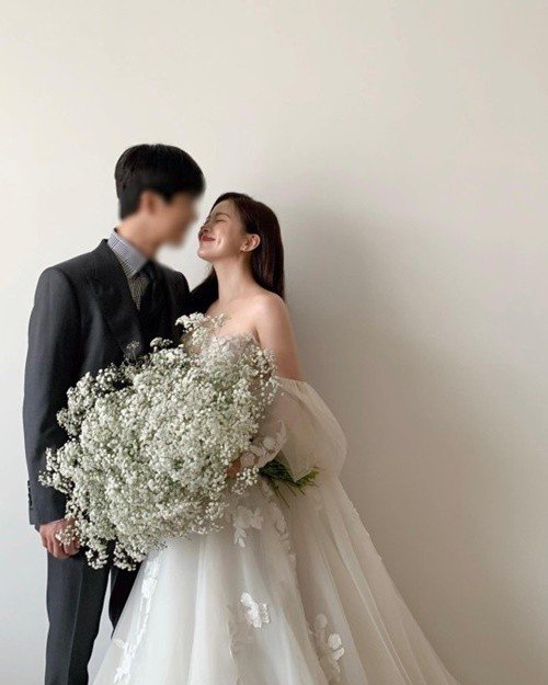 하늘은 27일 인스타그램에 "이렇게 안개꽃 한아름 다발도 너무 청순하고 예쁘지 않아요? 예비 남편 허락 안 받고 올리는 사진. 솔직히 이 정도는 허락해줘라"라는 글과 함께 웨딩 화보 컷을 올렸다.