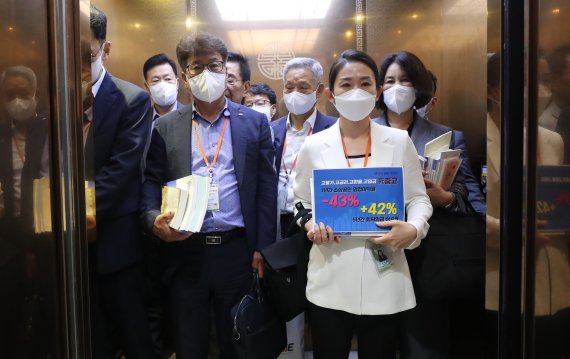 그러나 근로자위원 중 민주노총 소속 4명은 표결을 거부하고 회의장에서 퇴장했다. 사용자위원 9명도 표결 선포 직후 전원 퇴장했다. 이들은 기권 처리됐다.