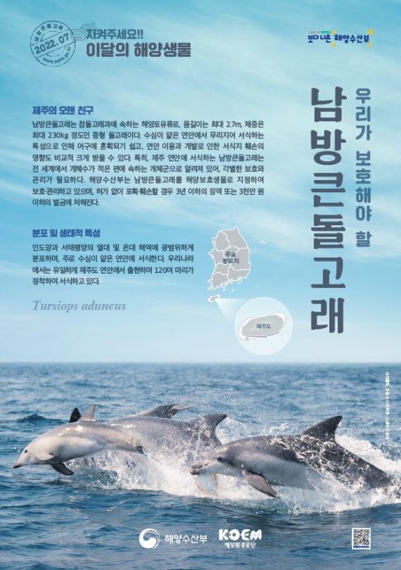 한편 남방큰돌고래를 비롯한 해양보호생물에 관한 자세한 정보는 해양환경정보포털 누리집에서 확인할 수 있다.