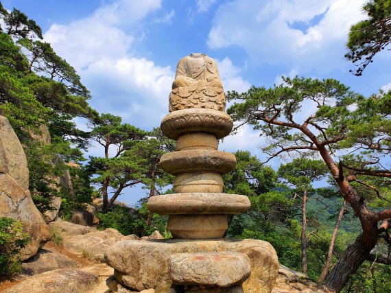 다시 등산로로 나와 400m의 가파른 돌계단을 오르며 땀 한 바가지를 흘리면 상선암이다. 쪼그만 법당 안에서 어떤 분이 온 몸이 땀에 젖은 채 계속 절을 하고 있다. 등산로 주변에서도 아무 바위에나 합장을 하는 분들의 모습이 많았다. 기도 없이 호흡만 가라앉히고 있는 나에게 암자의 보살님이 미숫가루물 한 컵을 내민다. 정말 불심이 가득한 산이다.