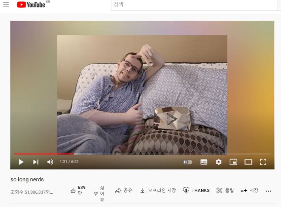 [서울=뉴시스]이수지 기자 = "잘 있어, 너드들(nerds)아." 구독자 1280만명을 보유한 인기 유튜버 테크노블레이드가 암 투병 끝에 숨을 거뒀다.