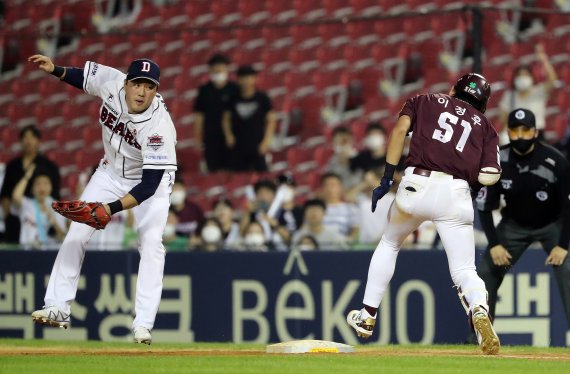 2-1로 앞선 9회초 2사 만루 위기에 처한 두산은 홍건희가 이정후에게 2루 땅볼을 유도해 경기를 끝내는 듯 했다.